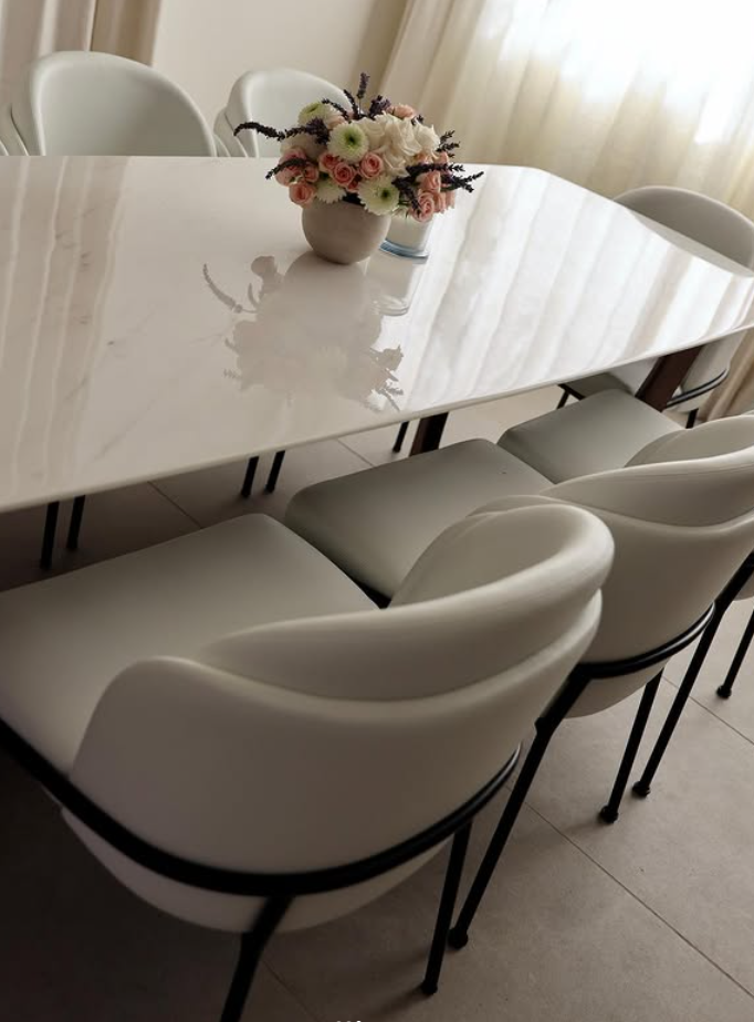 Gorgeous, opulent table top and a handsome dark base are like the perfect homecoming pair. Made with your choice of white lacquer, white or black ceramic, carrara or black marble and dark wood, the Evelyn Dining Table is an immediately modern classic, simply designed and ready to bring home.