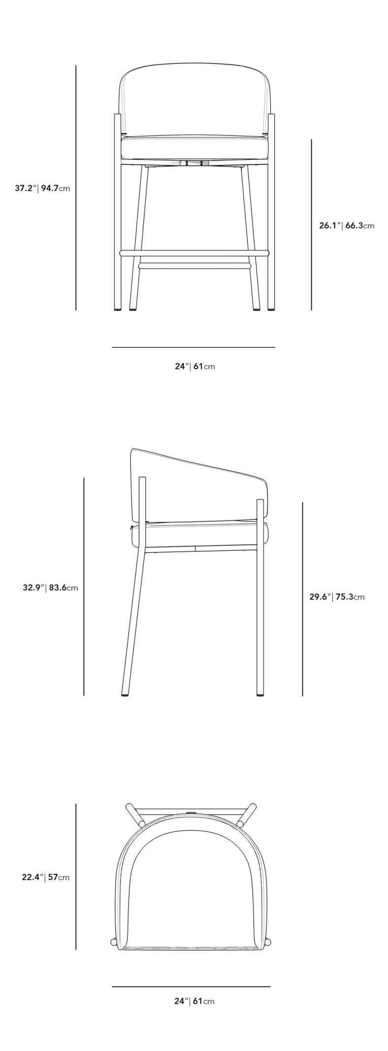 24 in x 22.4 in x 37.2 in