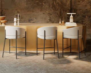 Revealing its luxuriant character, the Solana invites you to delve into an atmosphere of pure sophistication with its curved form. Pairing sumptuously plush upholstery with a contrasting metal base, the Solana Counter Stool brings grace and modern luxury to any kitchen or dining space.
